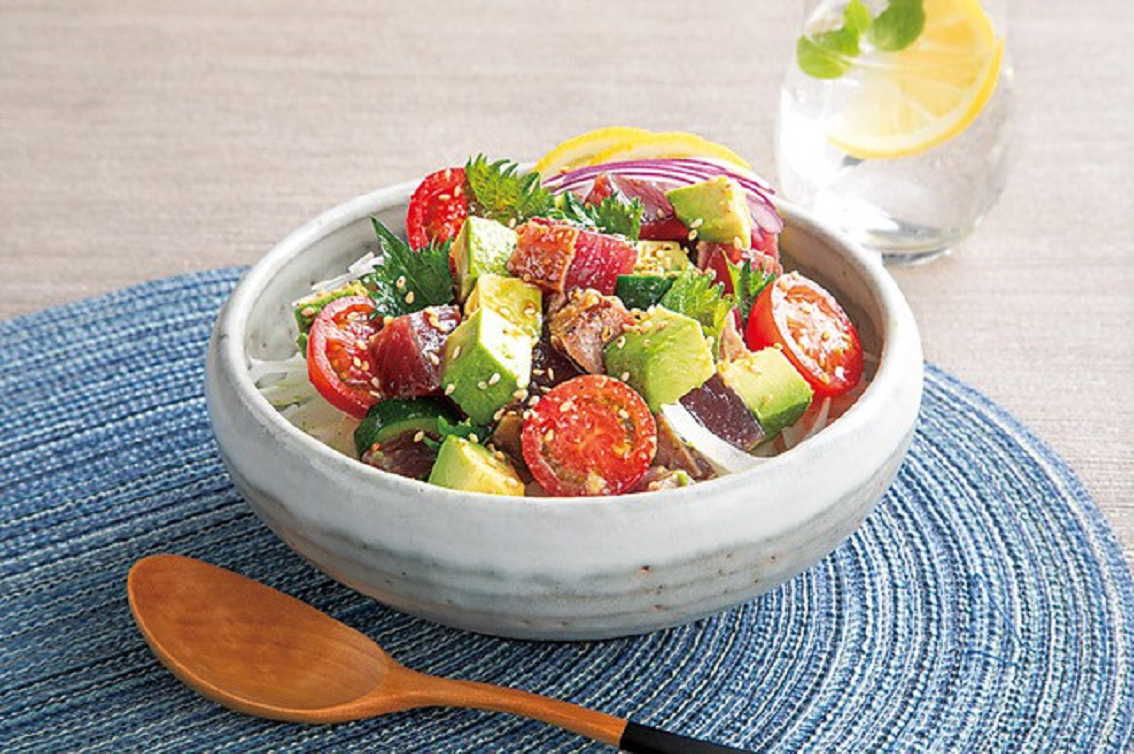 #丼ぶり#さっぱり#春#たまねぎ#かつお#アボカド#トマト