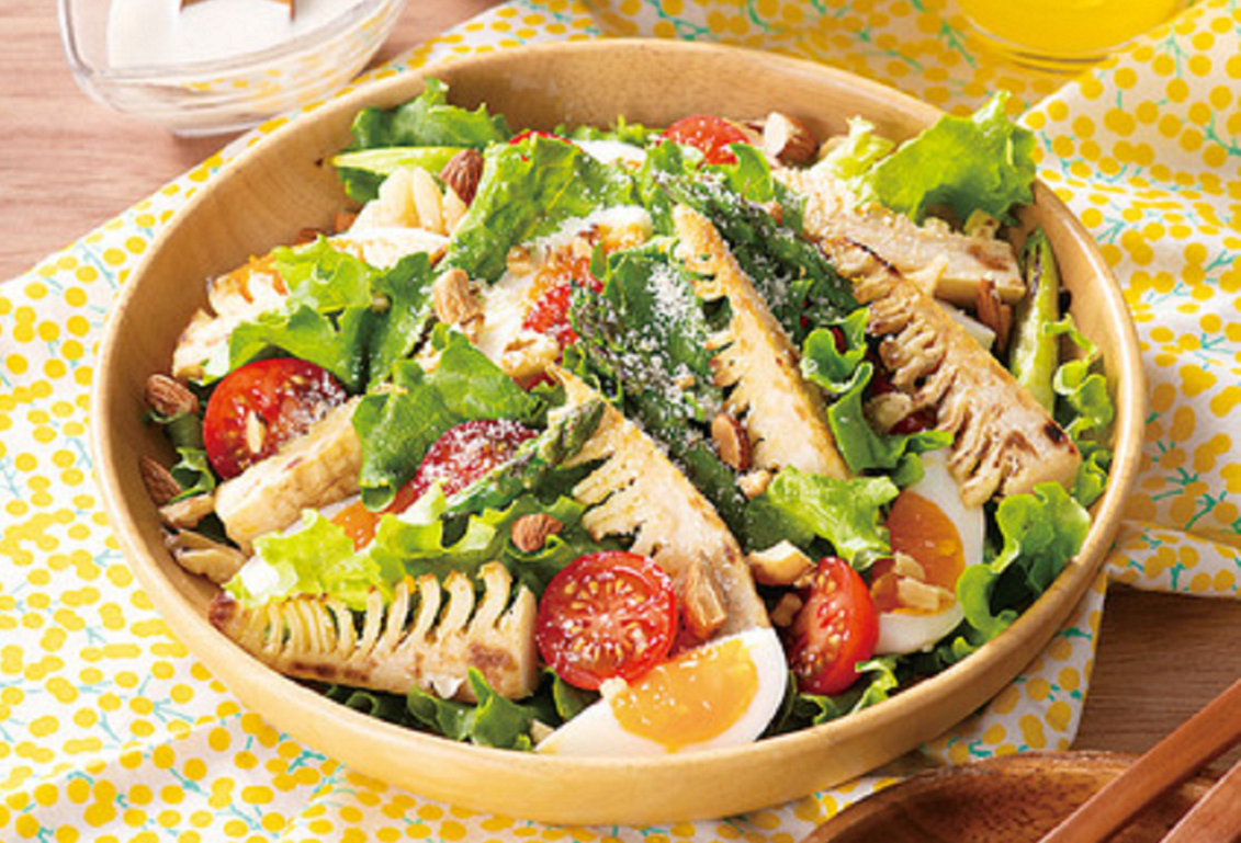 #ナッツ#アスパラ#春#たまご#たけのこ#レタス#トマト#サラダ#チーズ