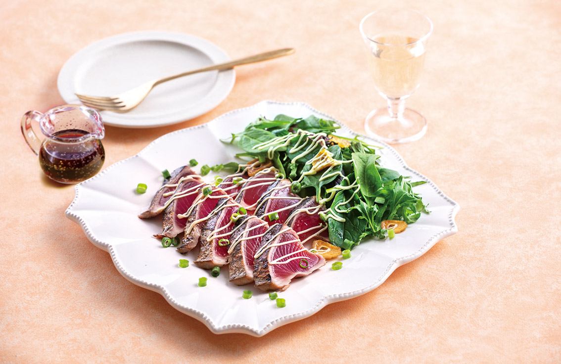 燻製マヨで!かつおのたたきのカルパッチョ風