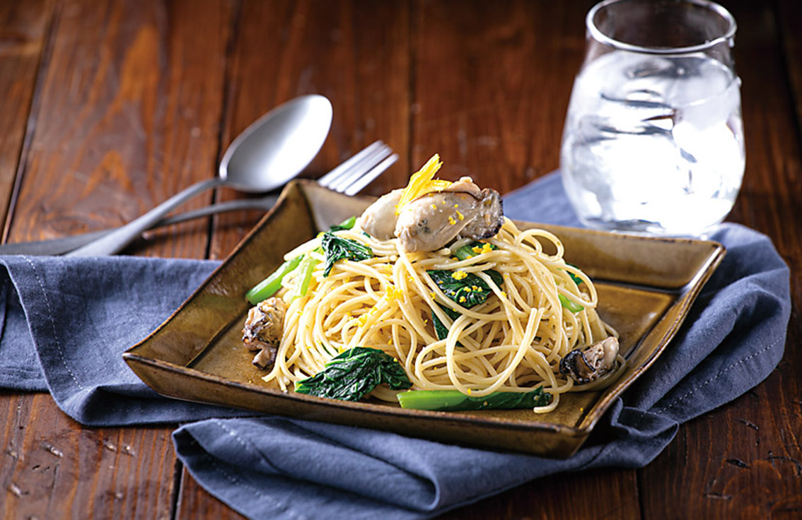 かきと小松菜のオイルパスタ~ゆずこしょう風味~