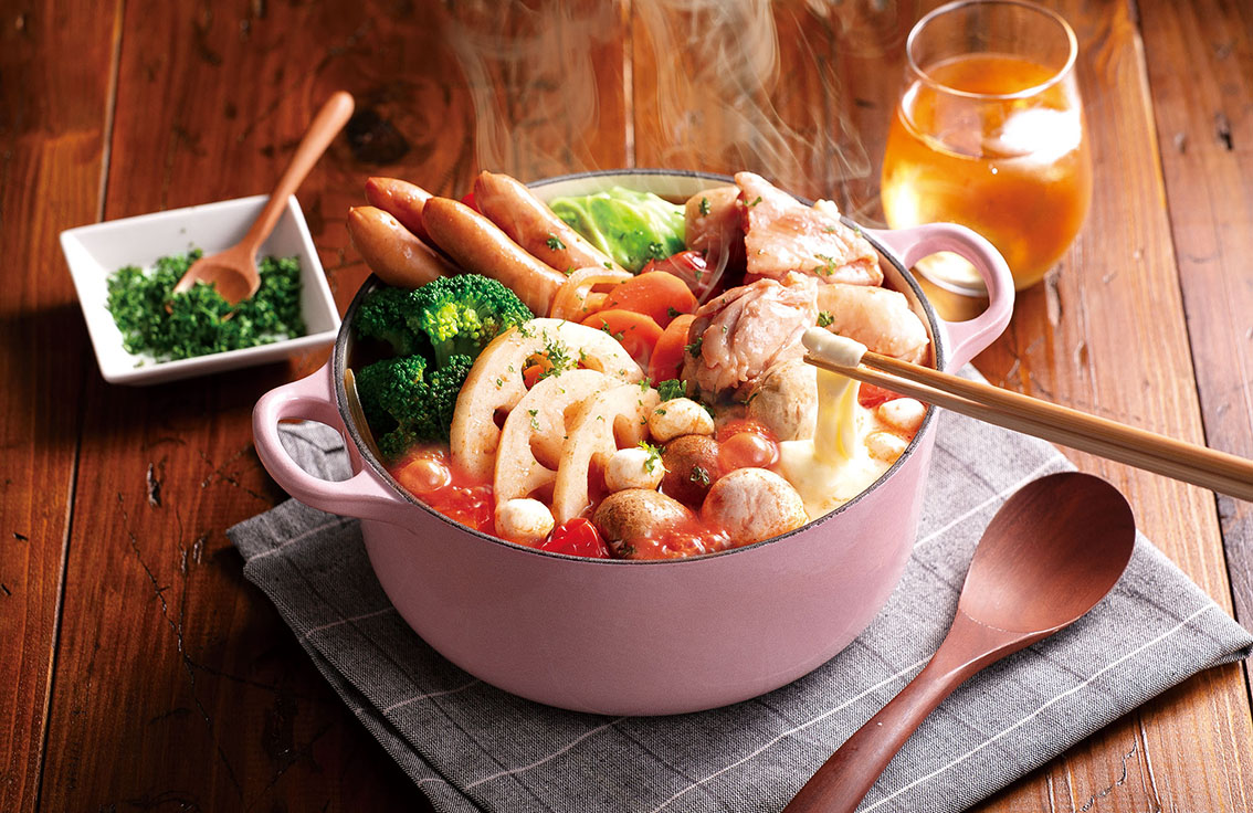 れんこんとマッシュルーム入り!トマトチーズ鍋