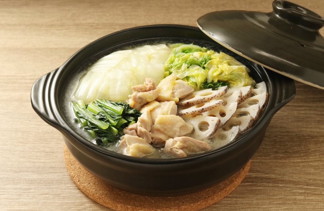 白菜とれんこんと小松菜の鶏だし・うま塩鍋