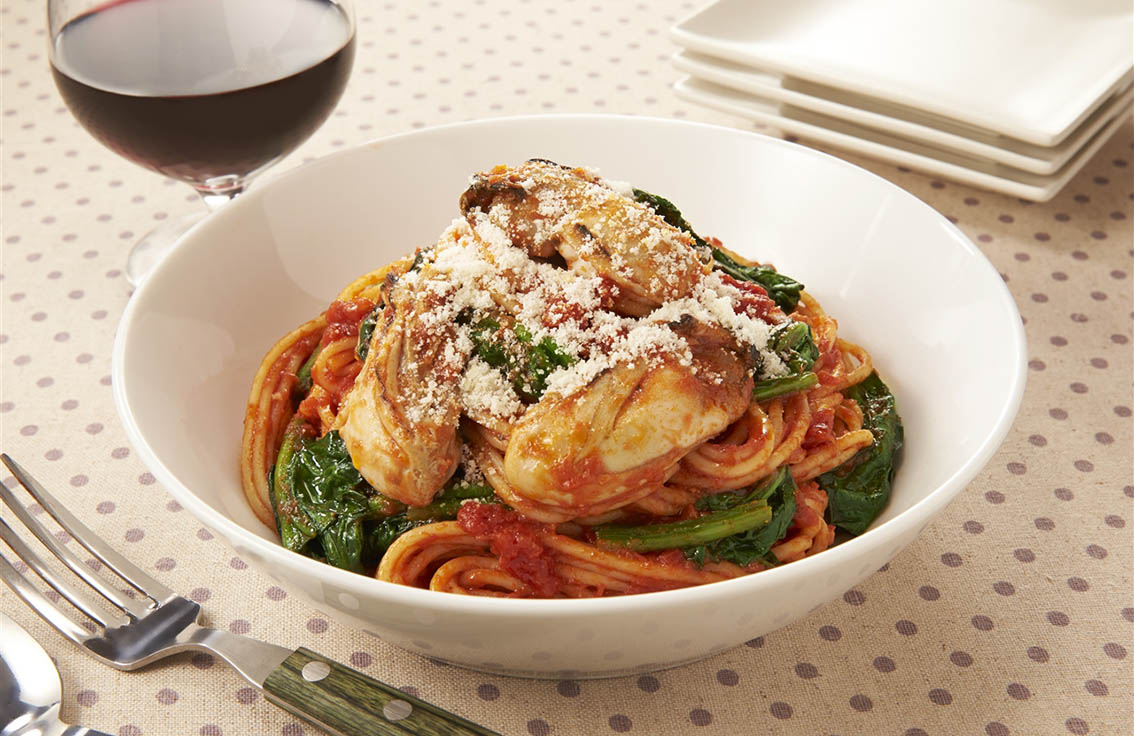 かきとほうれん草のトマトクリームパスタ