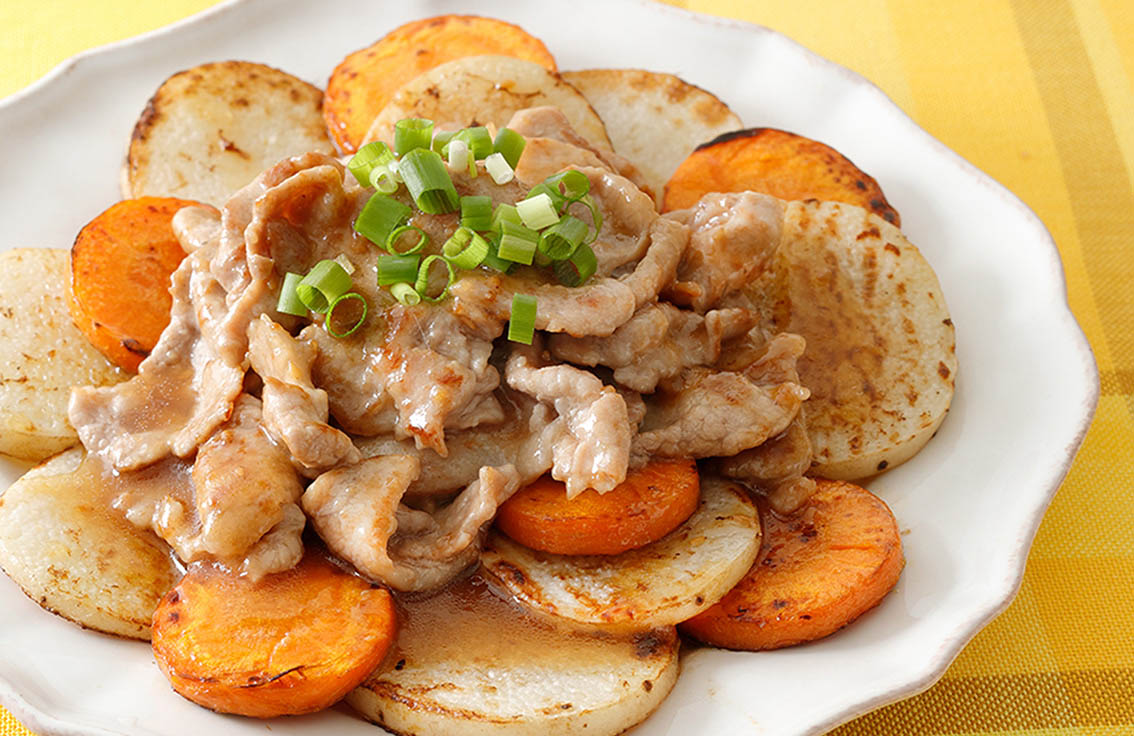 長いもとにんじんと豚肉の焼きサラダ