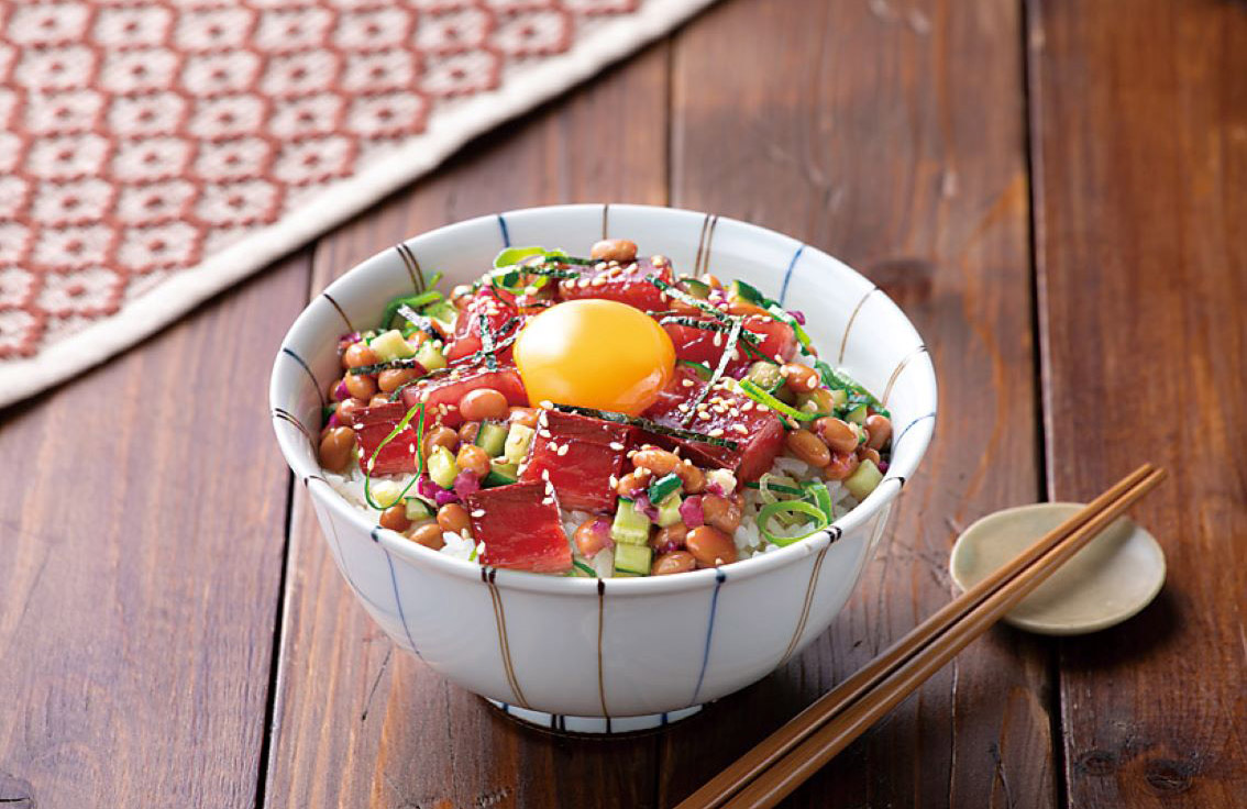 かつおの梅だれ納豆丼