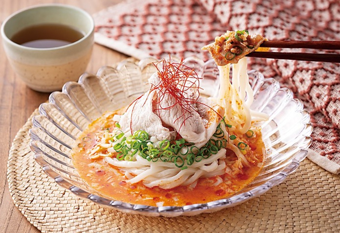 #冷たいうどん#小ねぎ#辛口#担々麺#長ねぎ#豆乳#豚肉