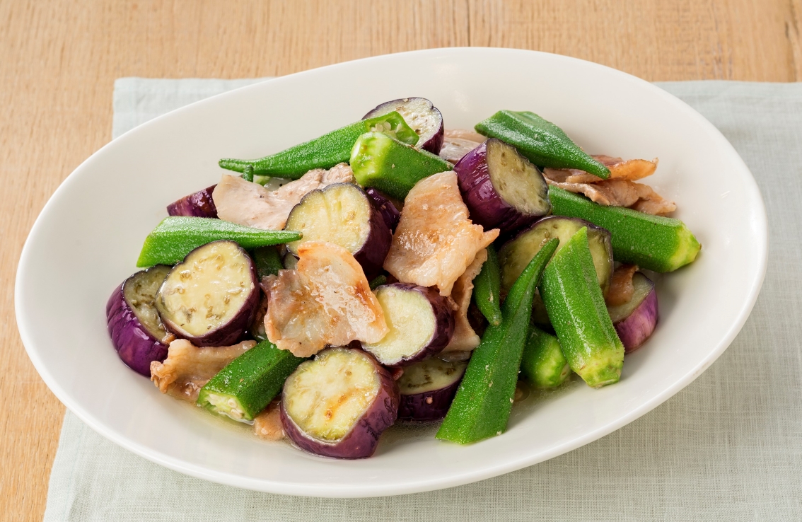 #蒸し煮#おくら#なす#豚肉