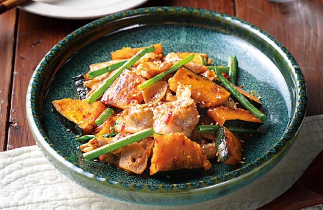 #追いがつおつゆ#かぼちゃ#なす#豚肉