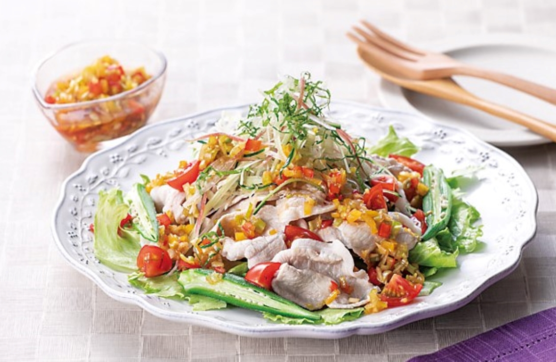 #冷しゃぶ#香味だれ#豚肉#サラダ#夏野菜