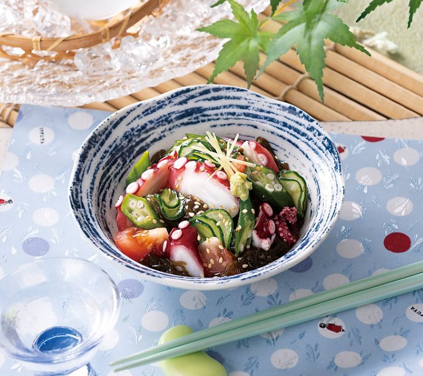 #もずく#おくら#酢の物#きゅうり#たこ#生姜#トマト#夏野菜