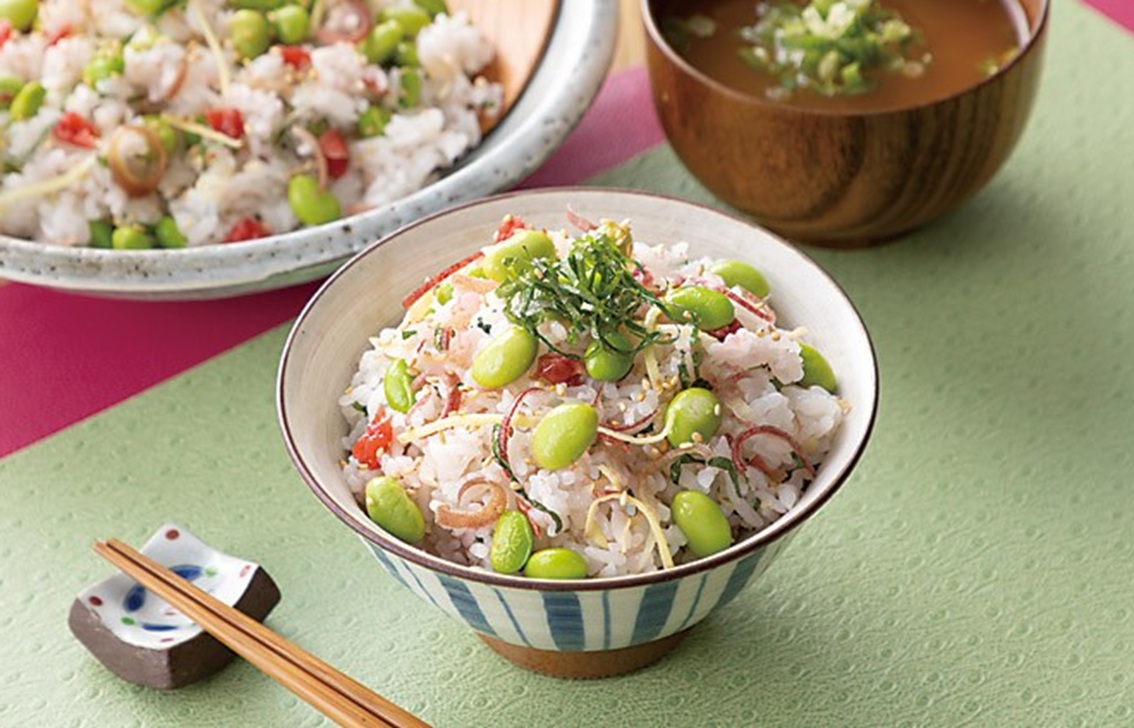 #みょうが子#混ぜご飯#枝豆#梅干し#大葉#生姜
