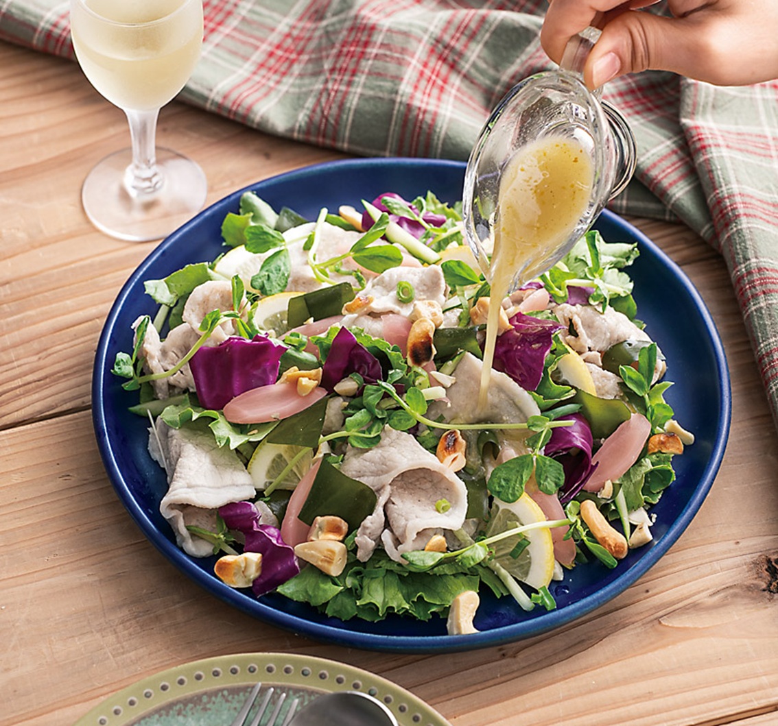 #カシューナッツ#新生姜#白だし#わかめ#きゅうり#レタス#しゃぶしゃぶ#豚肉#サラダ