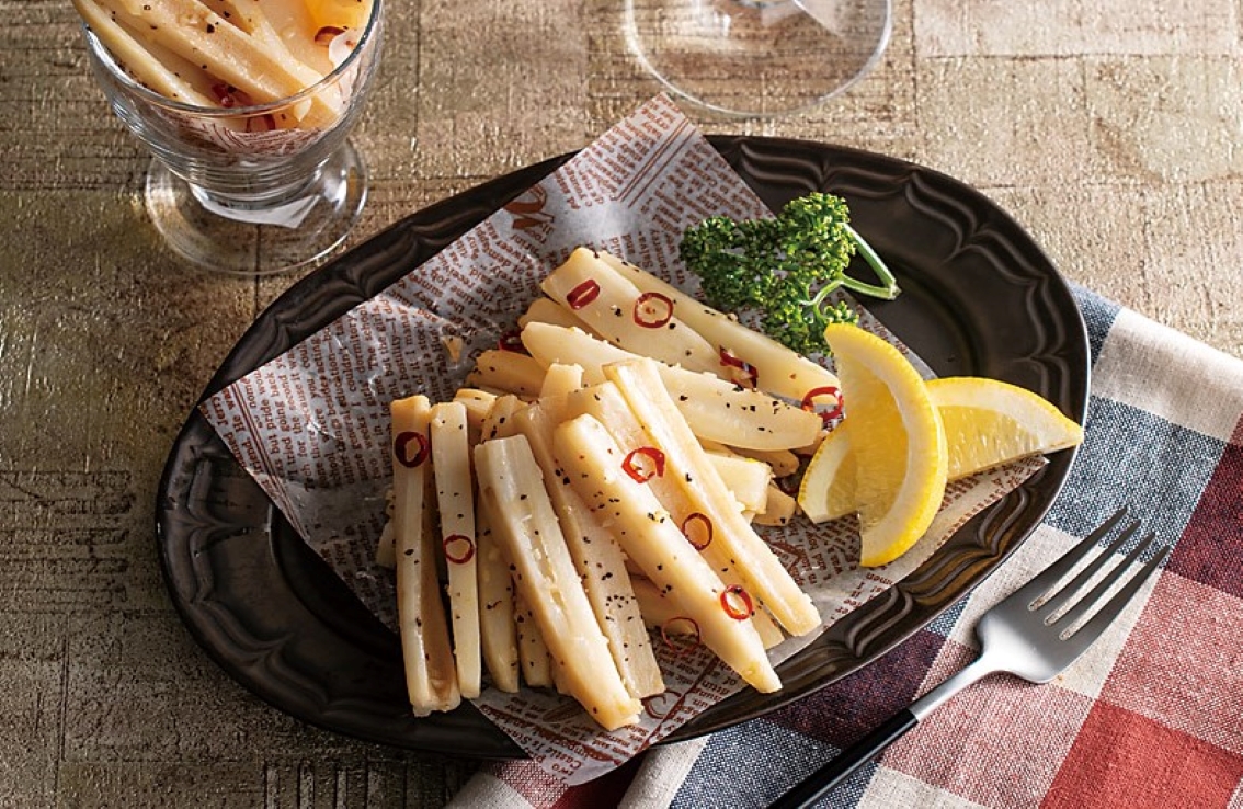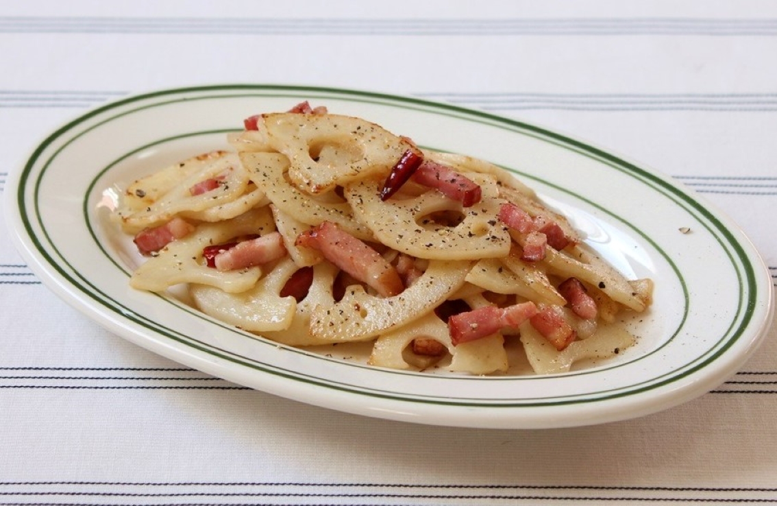 れんこんとベーコンのペペロンチーノ