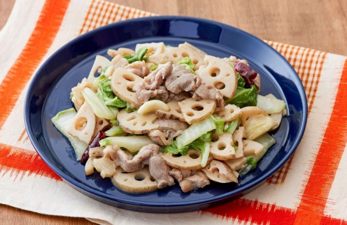#ピリ辛#にんにく#れんこん#炒め物#豚肉#白菜