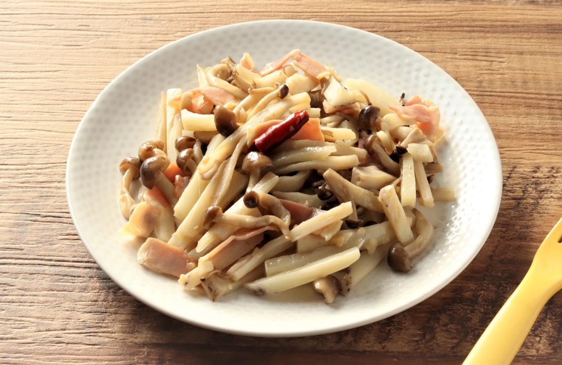 れんこんときのこのペペロンチーノ風