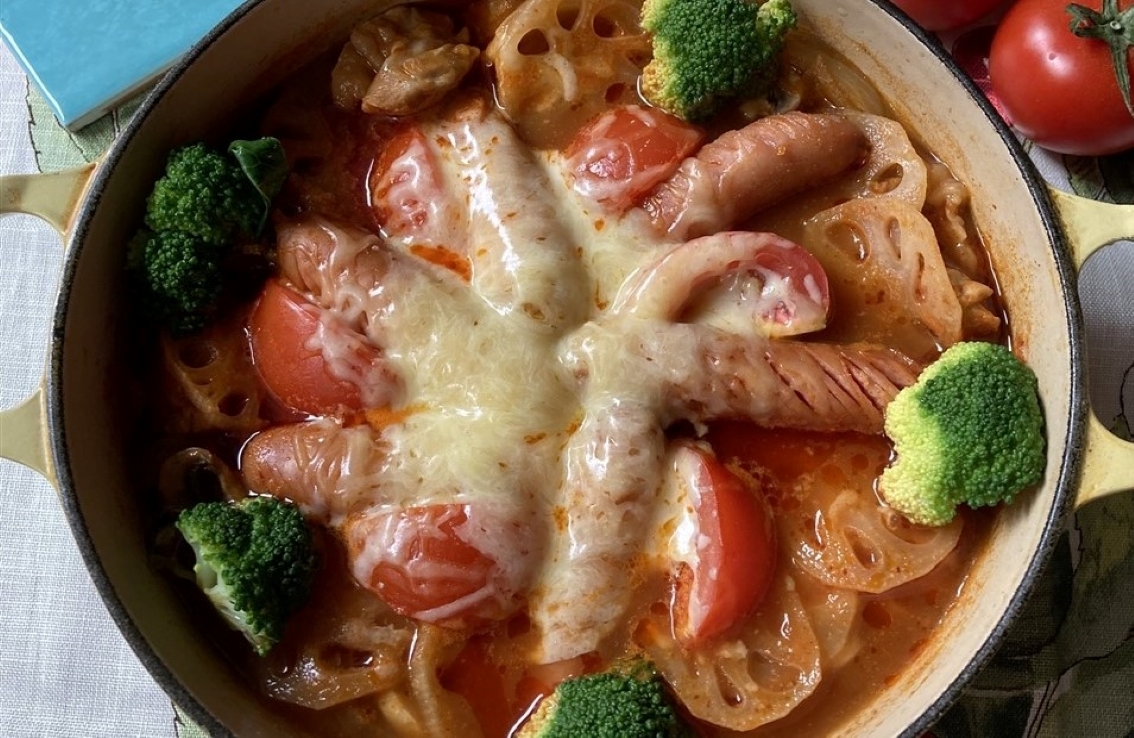 シャキシャキれんこんが楽しい!子供大好きピザ鍋
