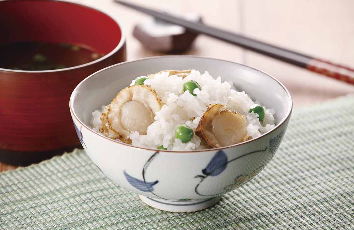 グリンピースとほたての炊き込みご飯