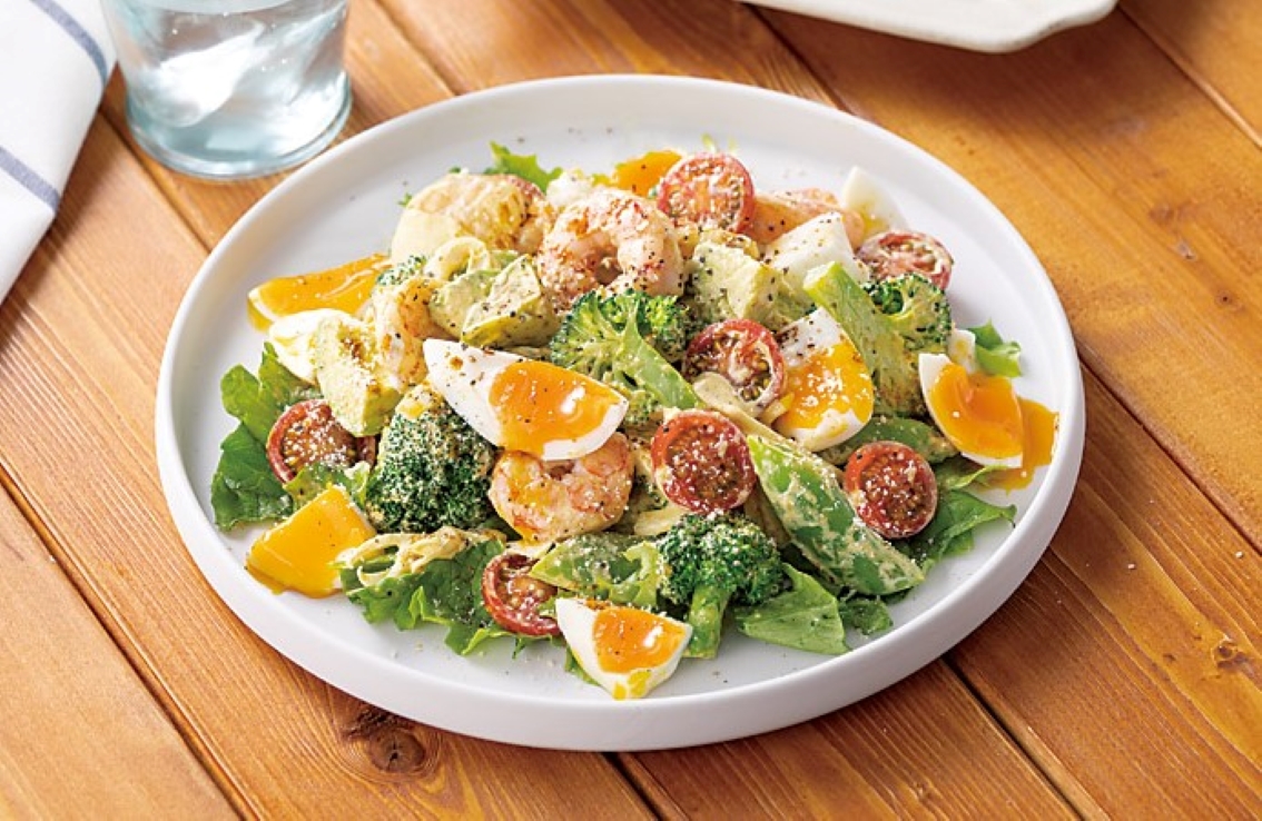 #カレー風味#春野菜#えび#ブロッコリー#サラダ