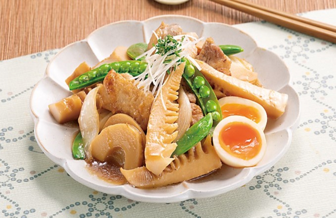#新たまねぎ#スナップエンドウ#春野菜#たけのこ#煮物#鶏肉