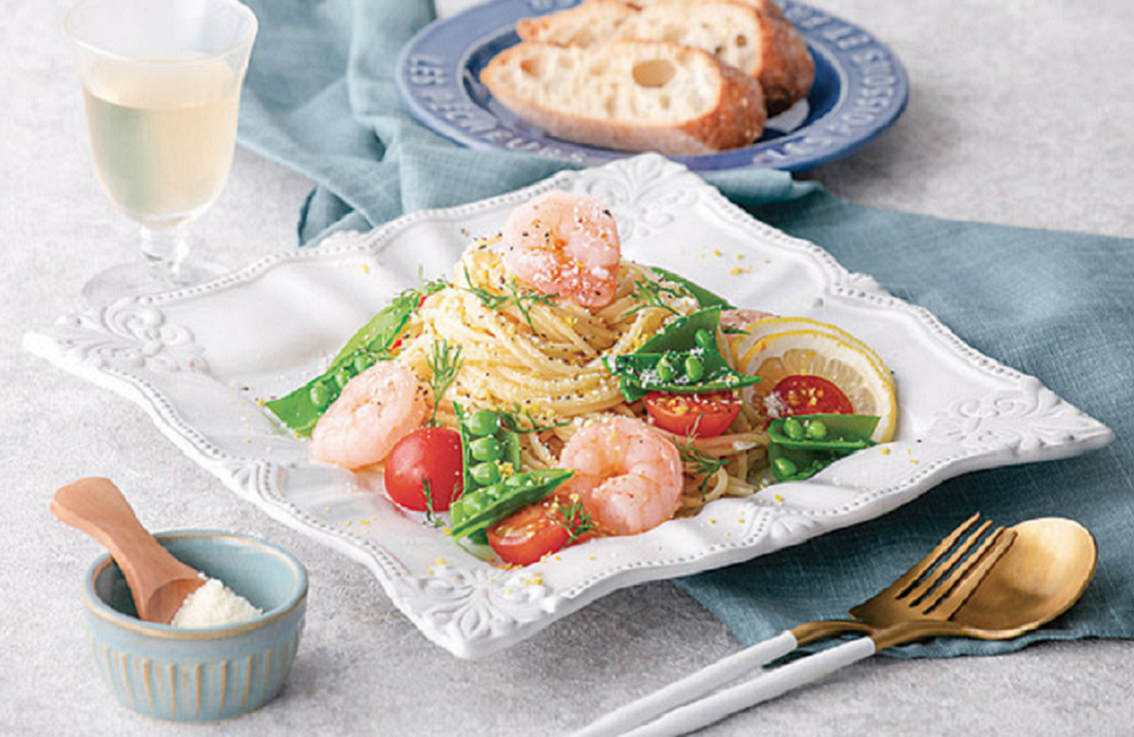春野菜とえびのレモンチーズパスタ