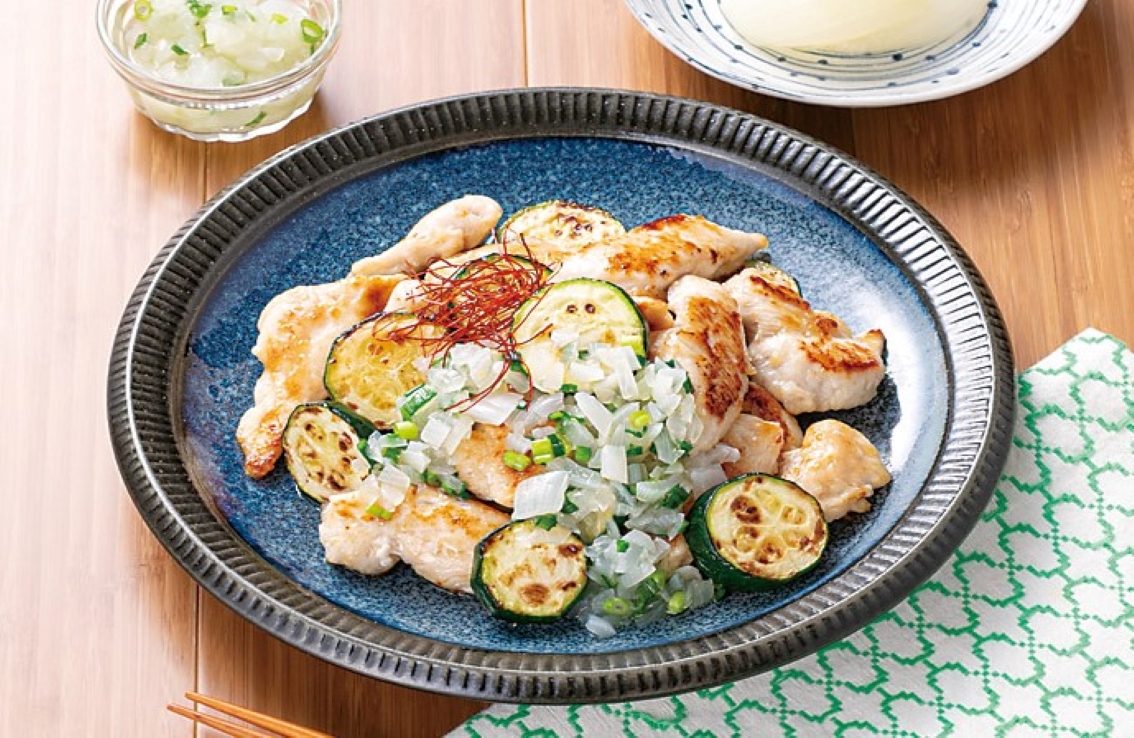 ズッキーニと鶏肉のレンジ蒸し~ヨーグルトソース~