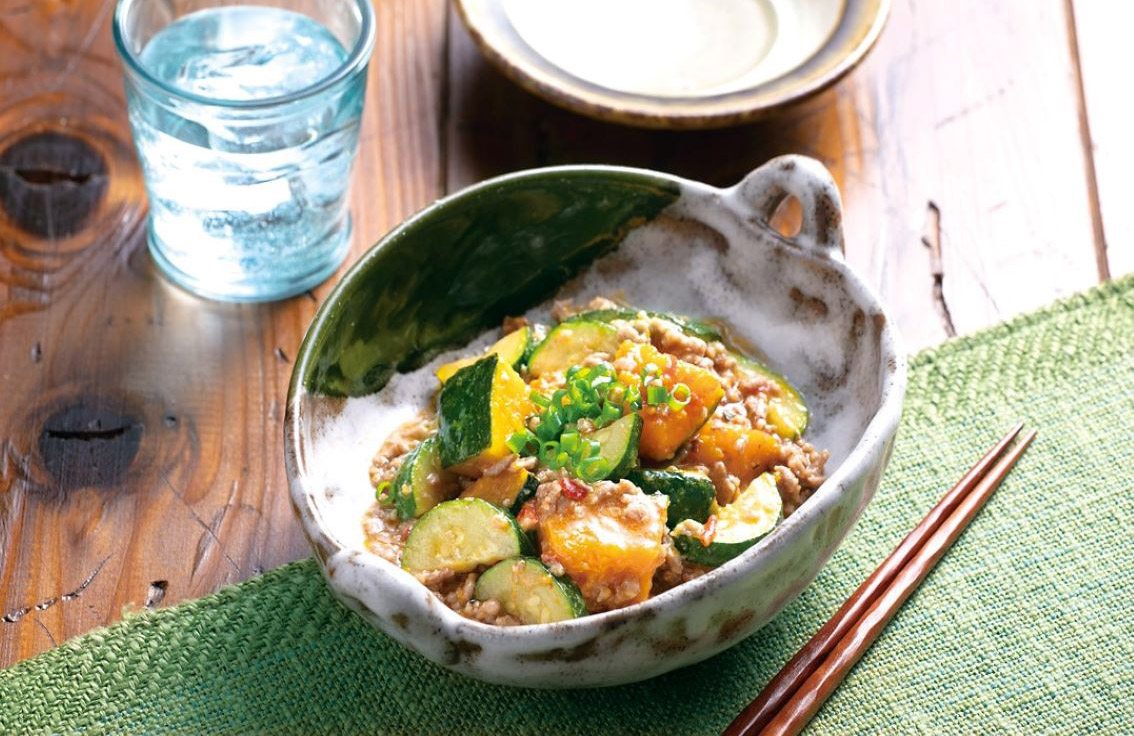 かぼちゃとズッキーニのそぼろ煮