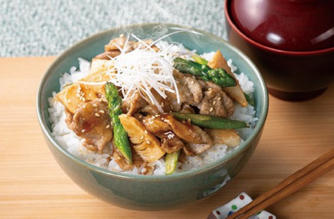 #豚小間#丼ぶり#アスパラ#焼肉のたれ