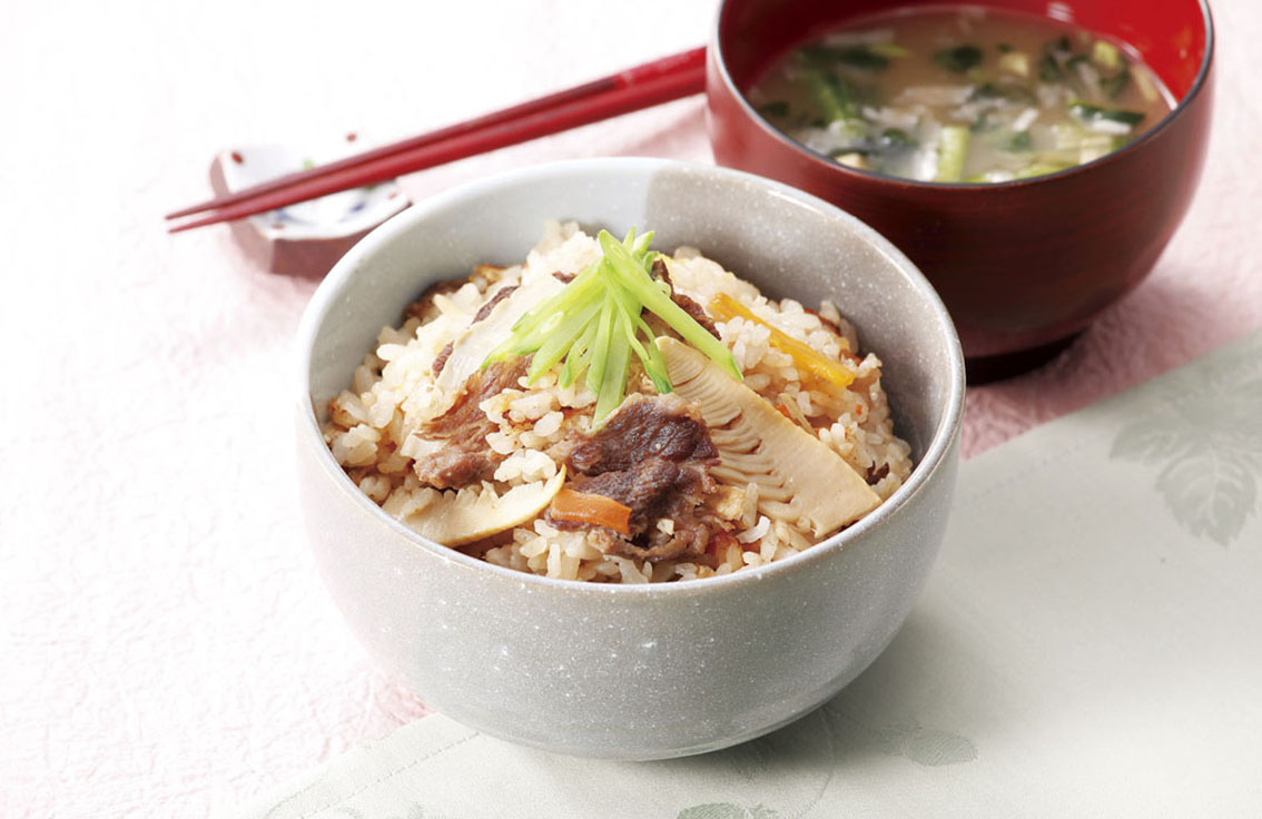 たけのこと牛肉の炊き込みご飯