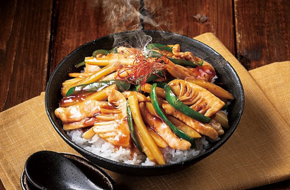 #丼ぶり#チンジャオロース#たけのこ#じゃがいも#ピーマン#鶏肉