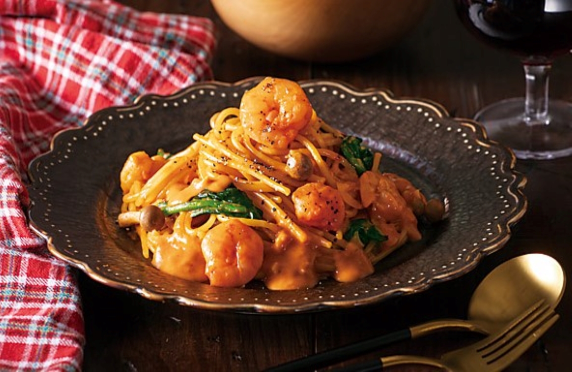 #ワンパン#クリームソースパスタ#クリームソース#コチュジャン#トマトソース#スパゲティ#えび#パスタ