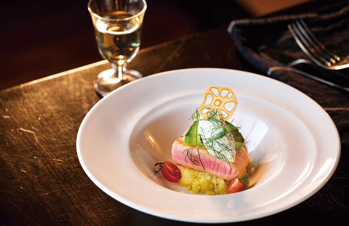 サーモンのソテー ハーブ入りクリームチーズ添え