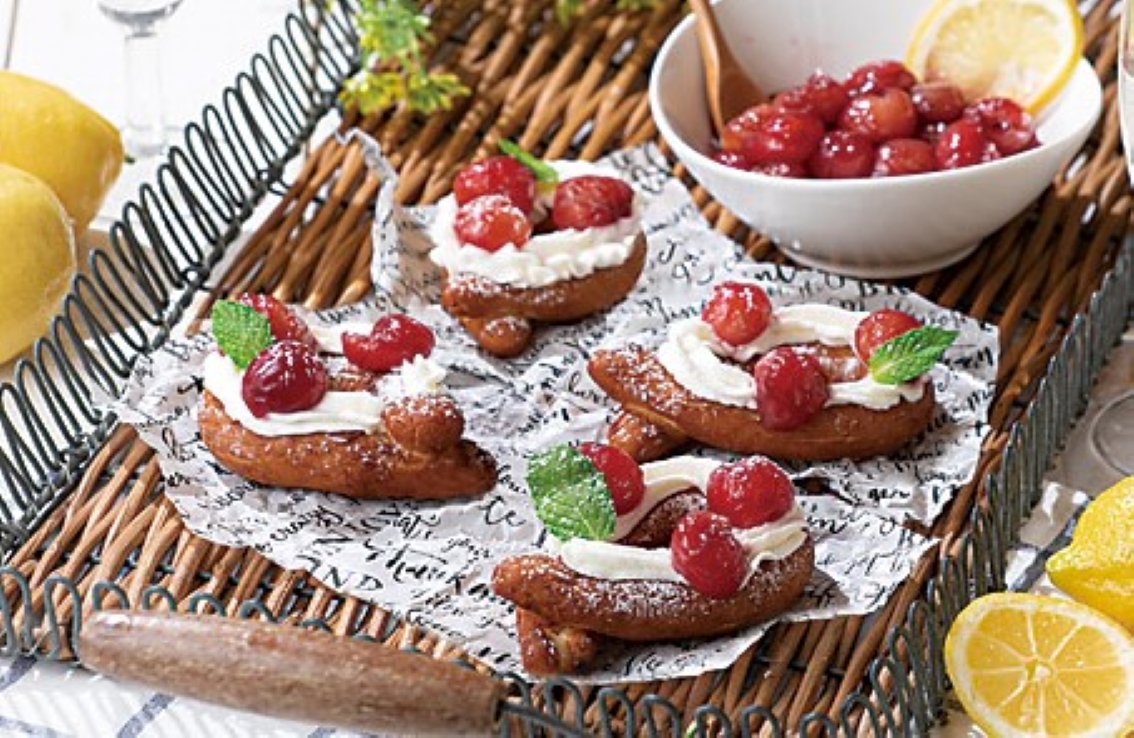 グラッファ(ナポリのじゃがいもドーナツ)さくらんぼのワイン煮添え