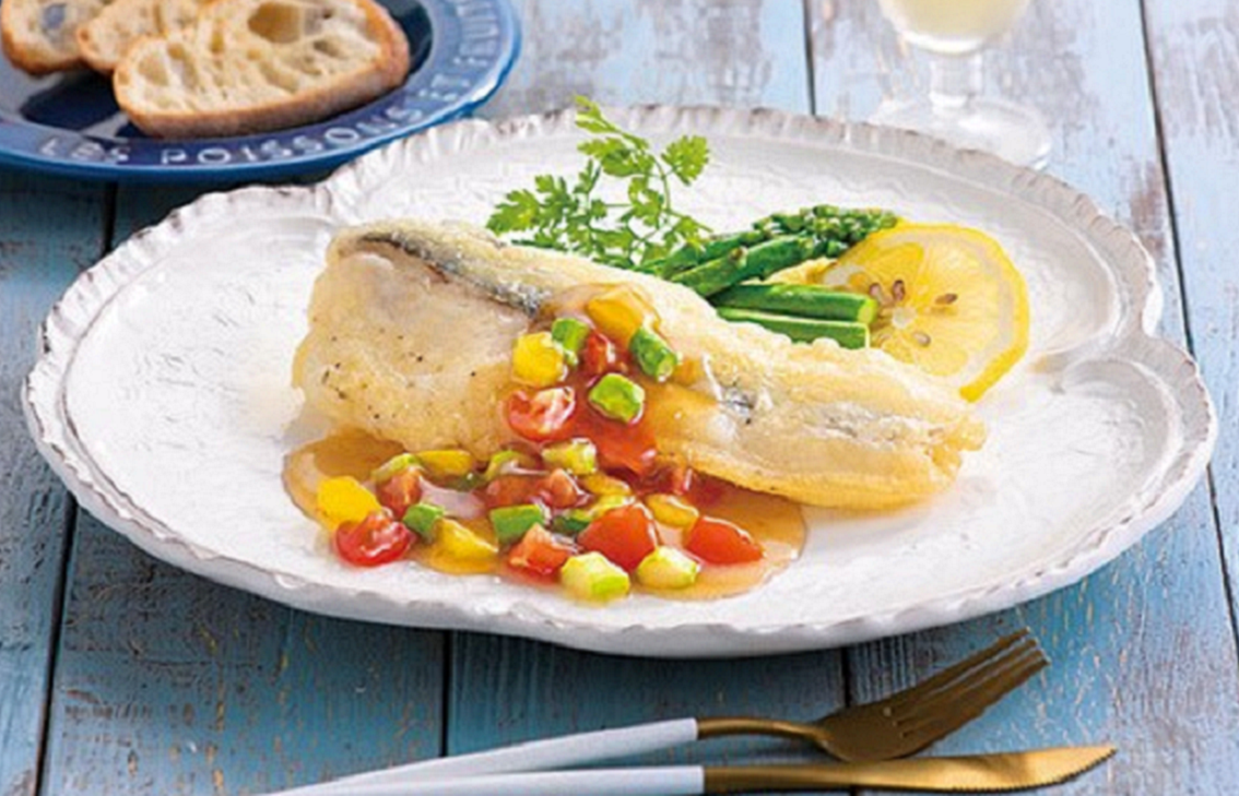 #フリット#カンタン酢#アスパラ#春野菜#パプリカ#白身魚#たら#トマト
