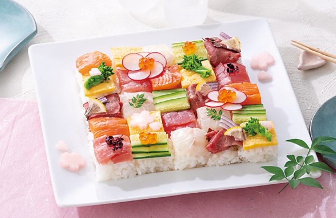 #押し寿司#ローストビーフ#刺身#ひな祭り