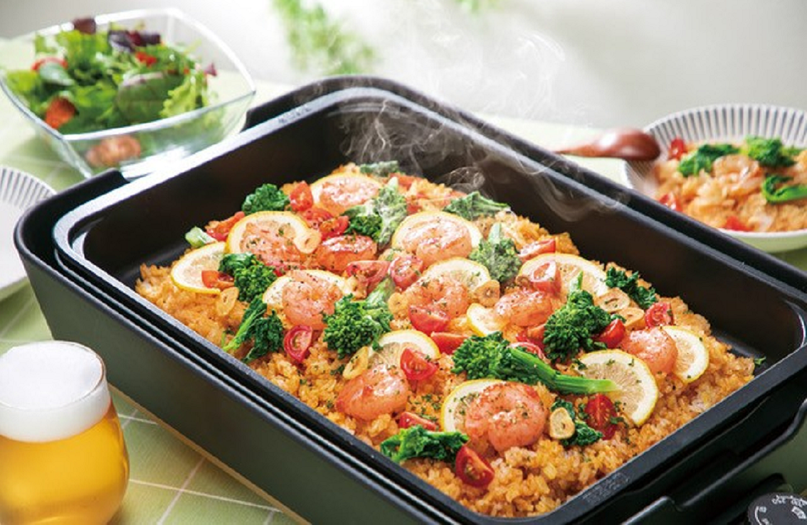 #冷凍エビ#なばな#ジャンバラヤ#新玉ねぎ#春#パーティー#えび#レモン#ホットプレート#トマト
