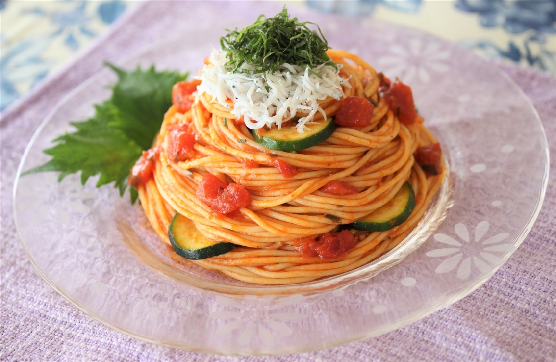 #冷製パスタ#しらす#スパゲッティ#トマト#ズッキーニ