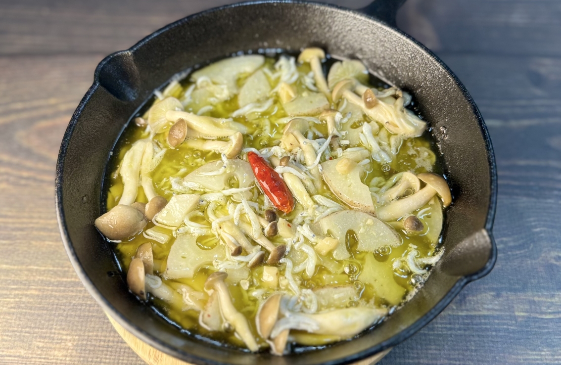 いばらきアヒージョ~しらす・れんこん・しめじのアヒージョ~