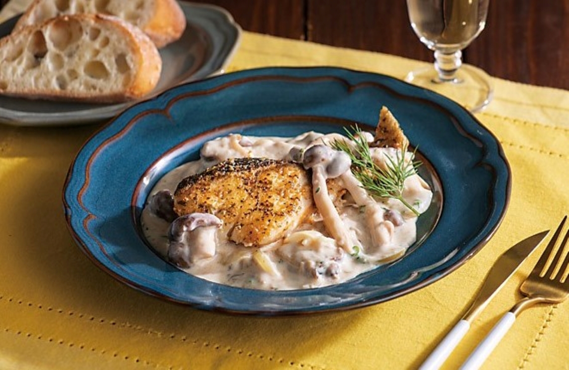 白身魚のきのこチーズソース