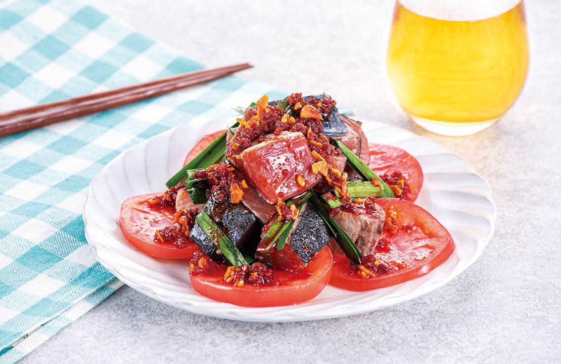 #ピリ辛#にら#かつお#トマト#簡単