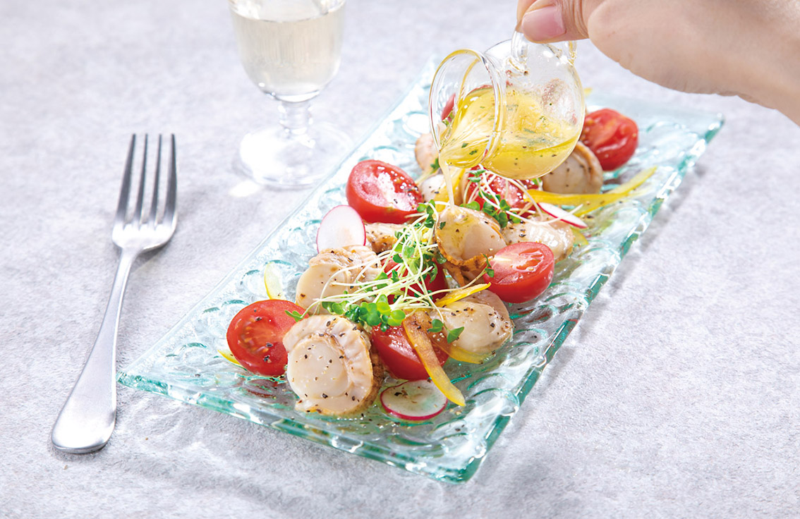 レモンソースのほたてカルパッチョ