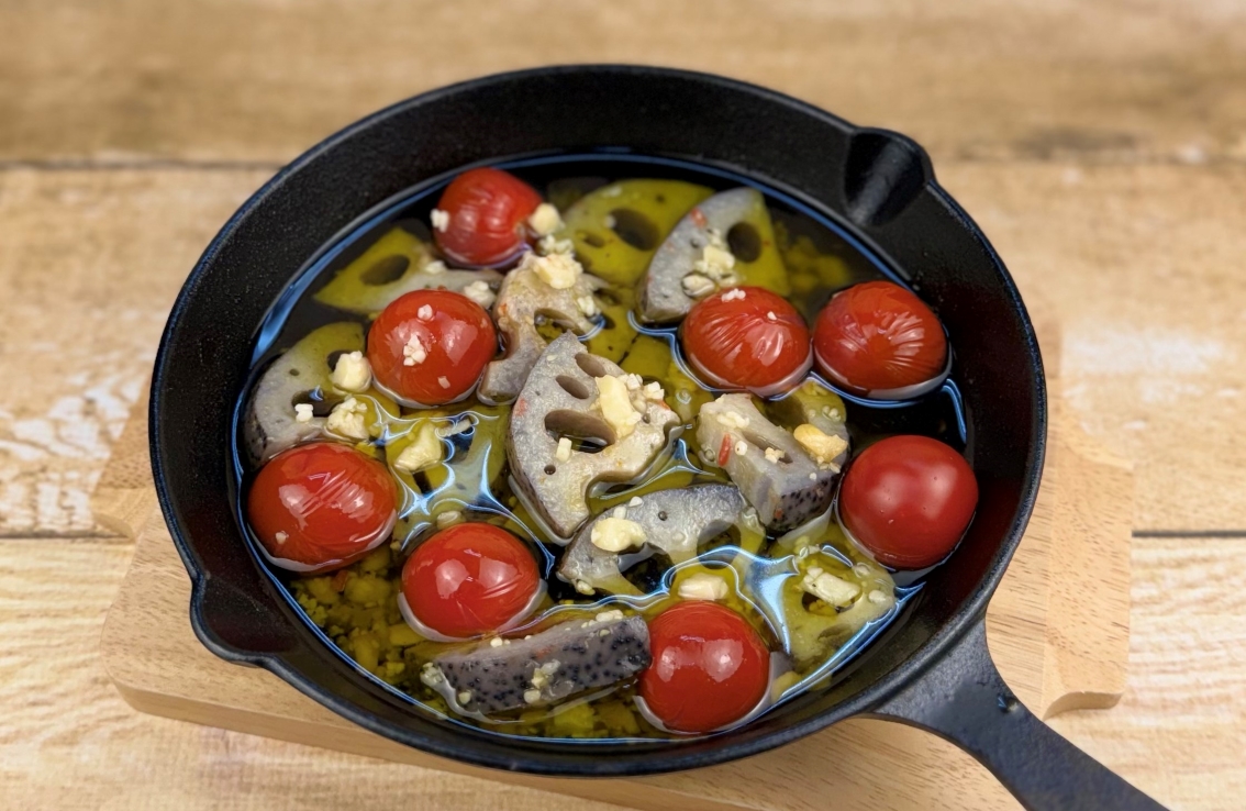 いばらきアヒージョ~茨城県産ミニトマトとれんこんのアヒージョ~