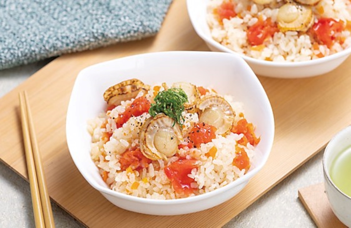 #コンソメ#たまねぎ#にんじん#炊き込みご飯#ほたて#トマト