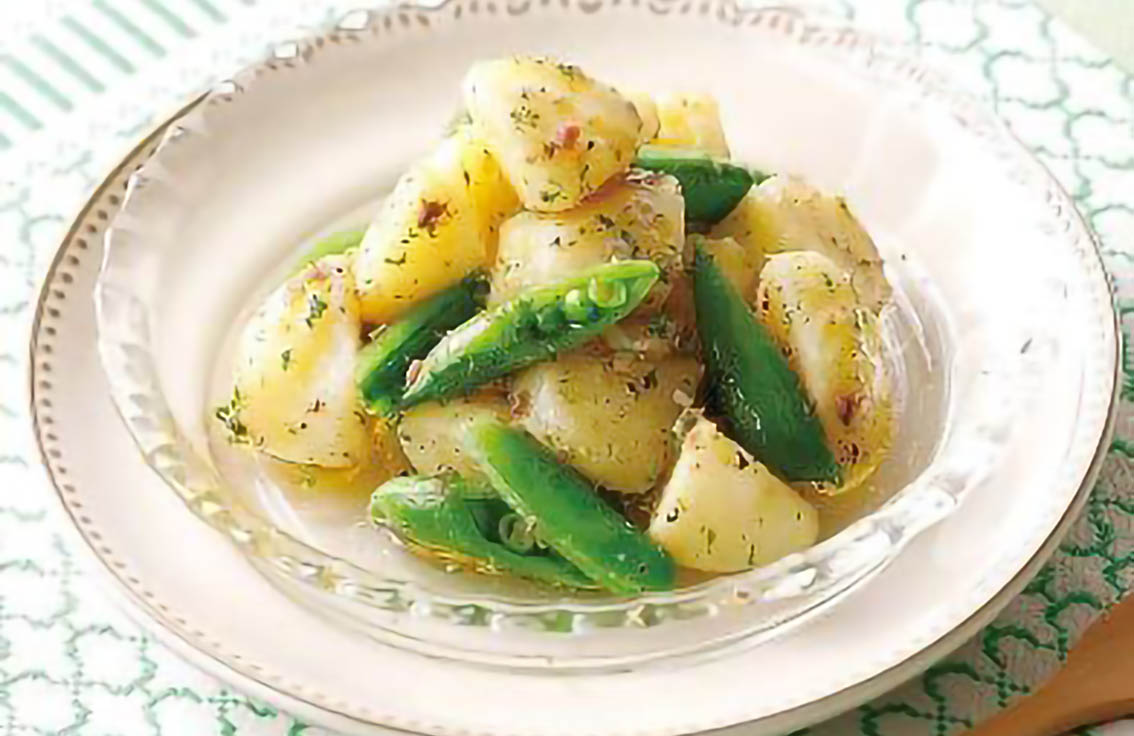 オリーブオイル漬け&新じゃがとスナップエンドウのアンチョビサラダ