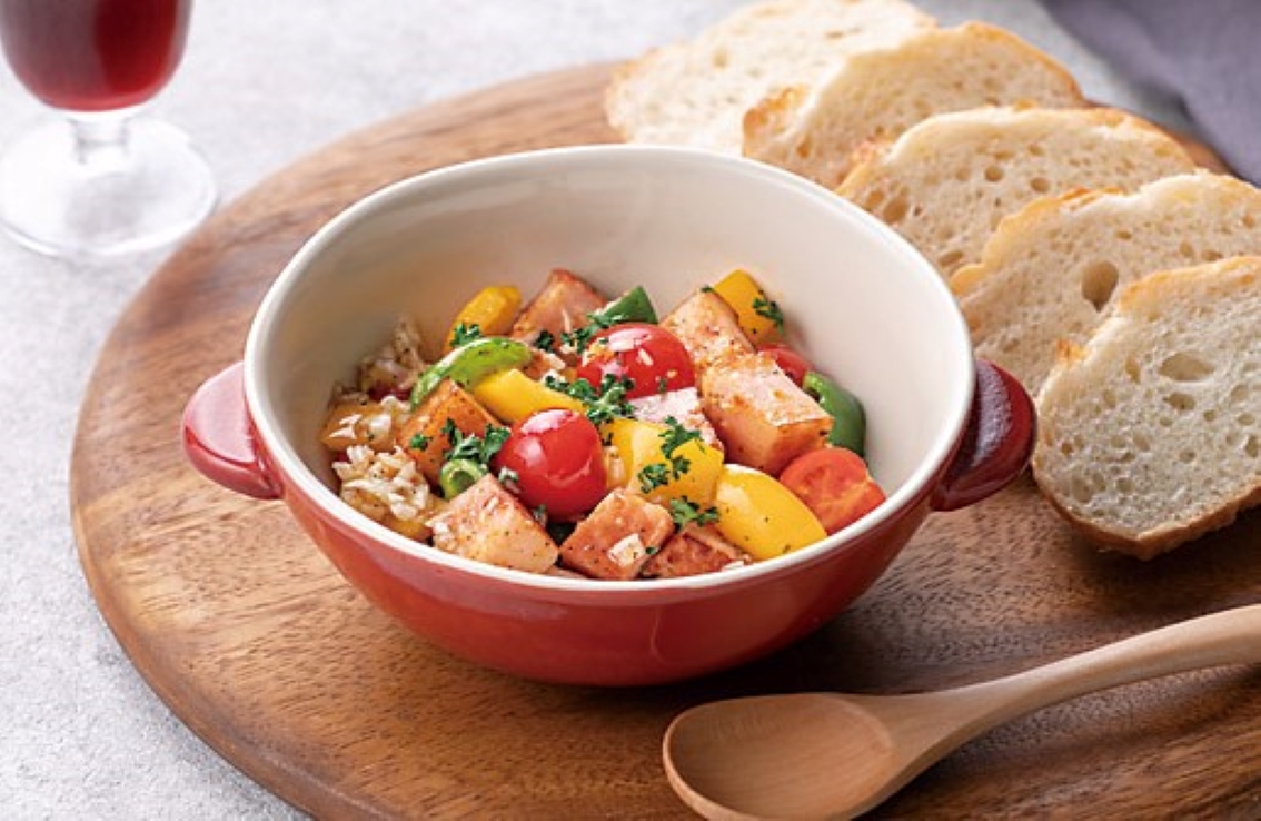 #フランスパン#マリネ#たまねぎ#ベーコン#アヒージョ#パプリカ#ミニトマト#ピーマン